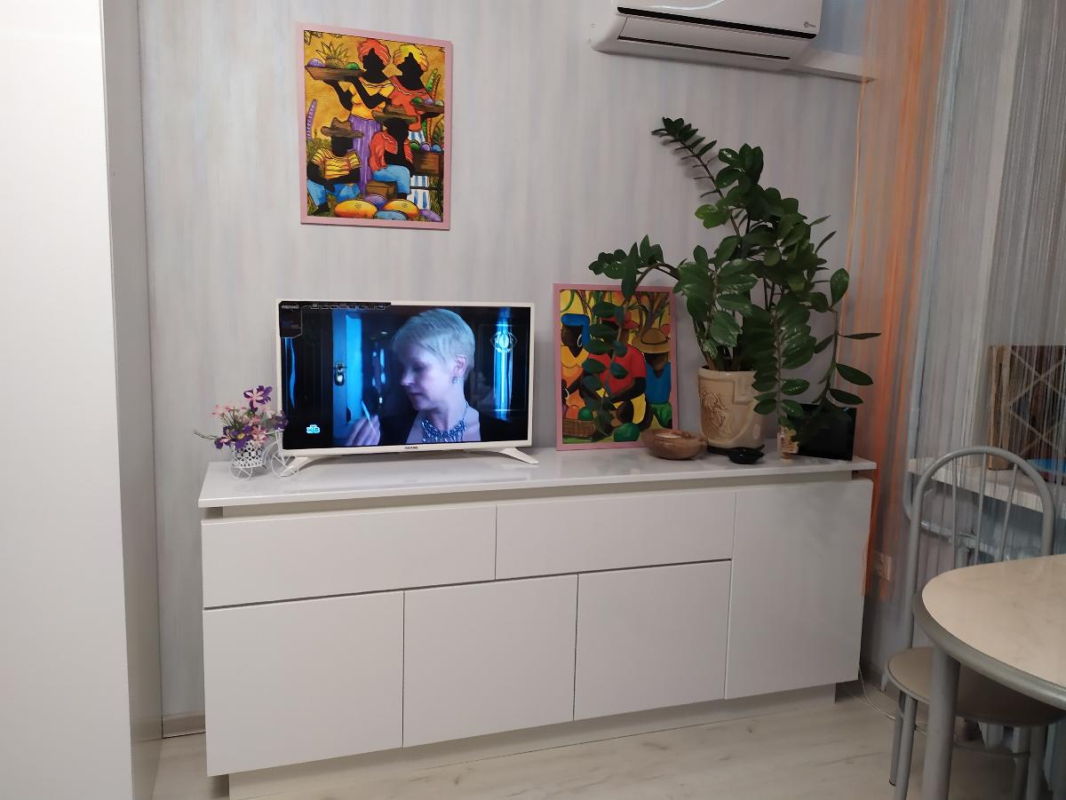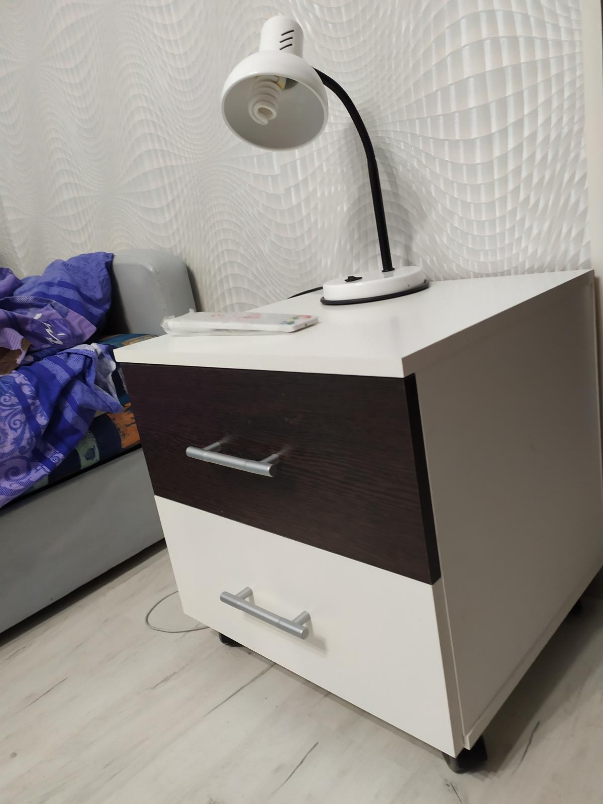 Хорошая тумбочка. Хорошо смотрится. Собирали сами. Приделали колесики, , т. к часто раскладываем диван и приходится отодвигать тумбочку.