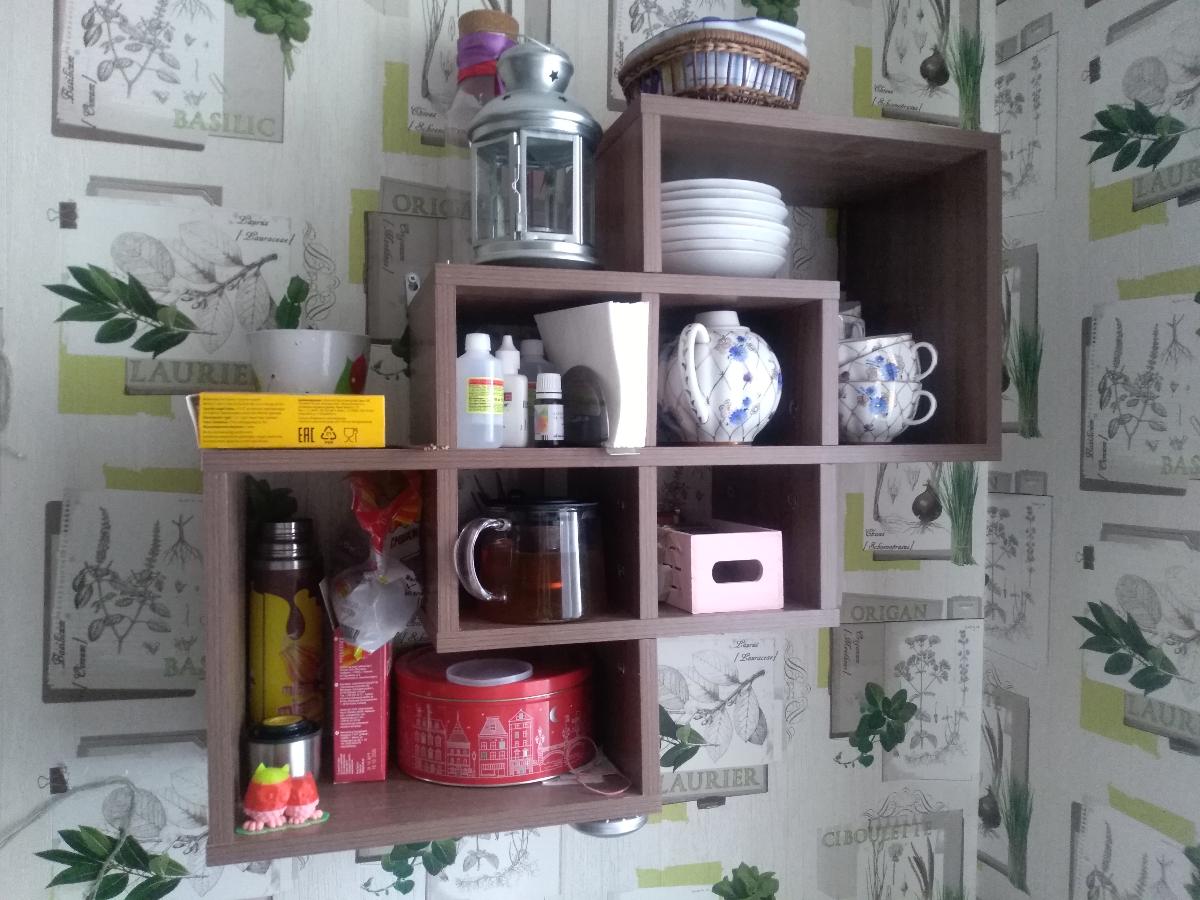 Очень понравилось, что полка есть в нескольких размерах. Брала для маленькой кухни самый маленький размер. Все что раньше мешалось на столе идеально поместилось на полку. Большую глубину считаю плюсом, коробка печенья идеально поместилось.