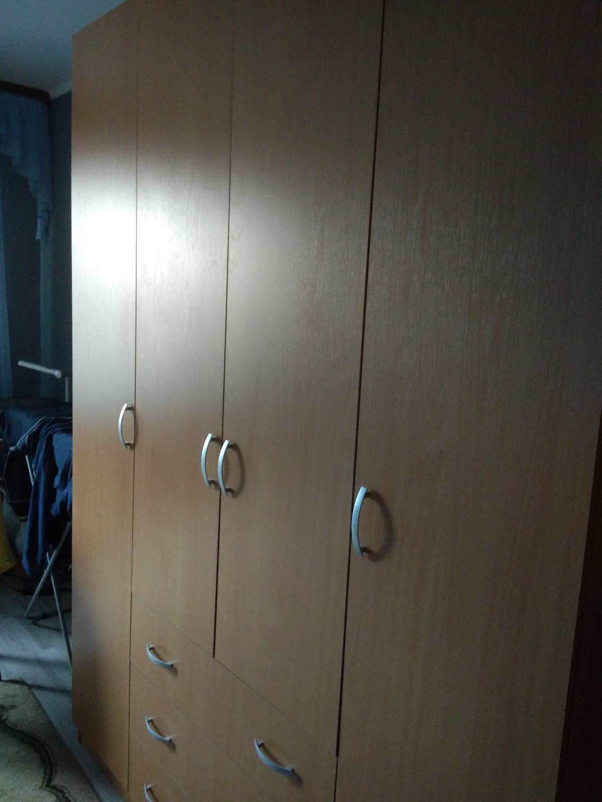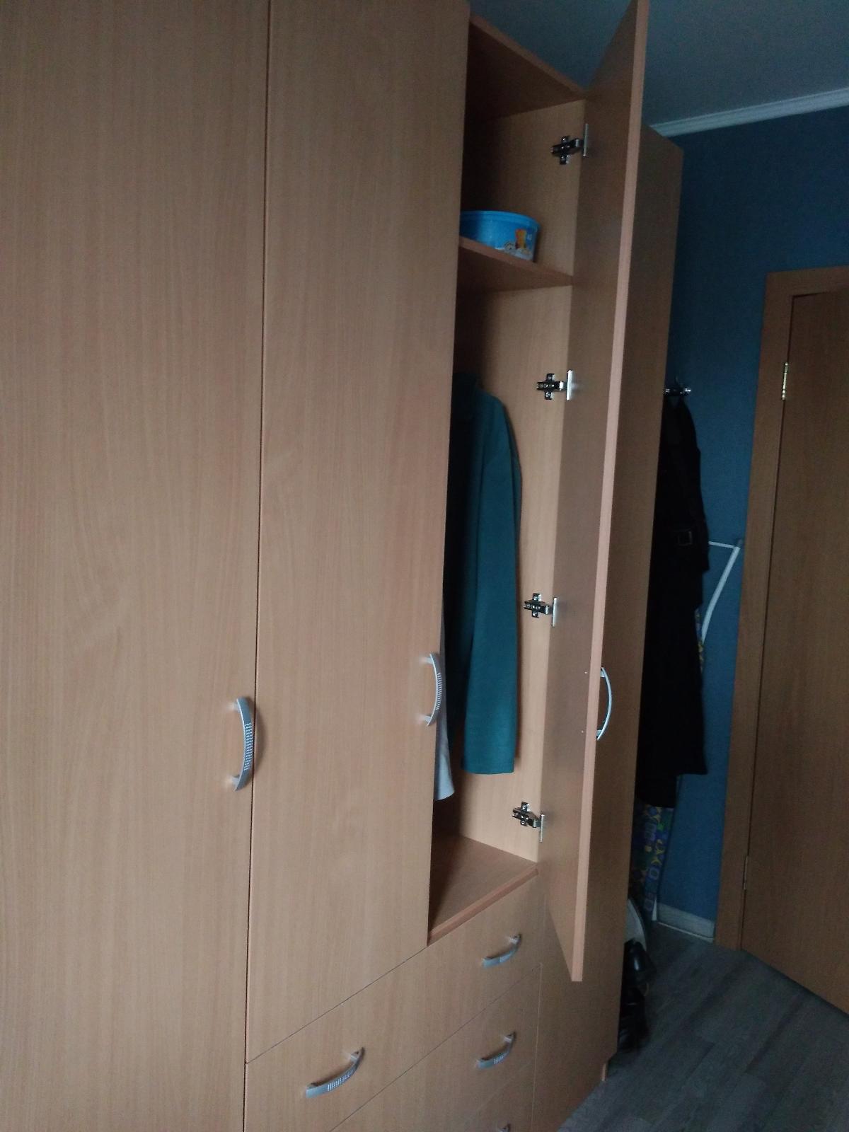 Долго выбирали распашной шкаф. Остановились на этой модели. С выбором фирмы вопросов не было, так как до этого заказывали у них диван, который привезли в срок отличного качества. Шкаф также не подвел. Привезли ровно через неделю, как и обещали, собирали сами, за день управились. Все детали были на месте. Шкаф очень вместительный, удобный. Даже влезло больше вещей, чем планировали. В комнате смотрится очень стильно. Долго пахло деревом)