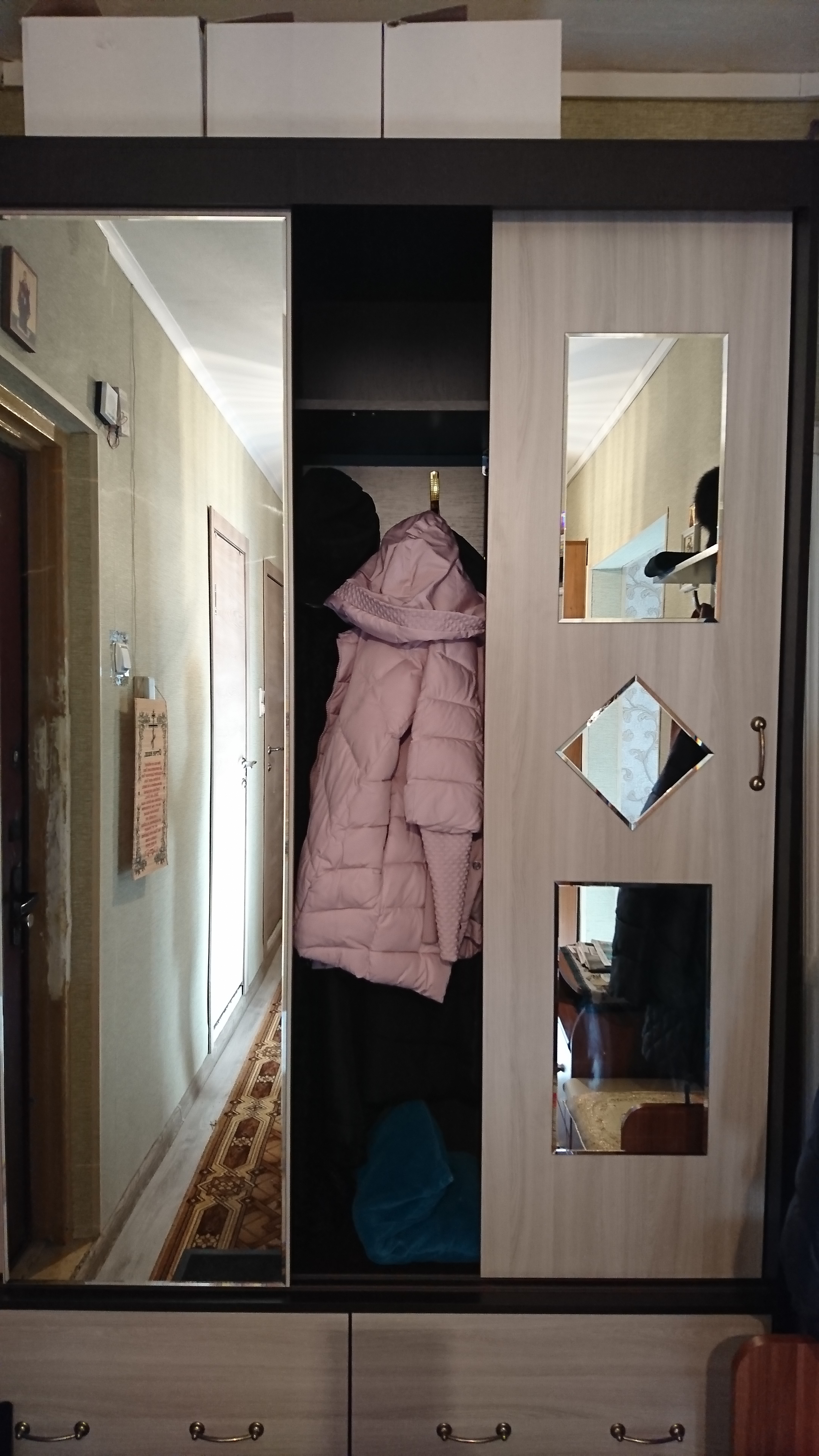 Шкаф высокий, полностью в кадр не влез(Заказ 00000308926.Заказывал шкаф на балкон с нестандартными размерами. Заказ был готов за 3 дня. пришлось даже просить немного подождать до ближайших выходных. Сборку делал сам. Все комплектующие были целые, без сколов.В ближайшее время планирую еще два заказаИз плюсов:1. Скорость изготовления и поставки товара2. Возможность выбора нестандартных размеров на сайте3. Широкий ассортимент