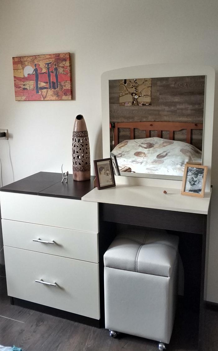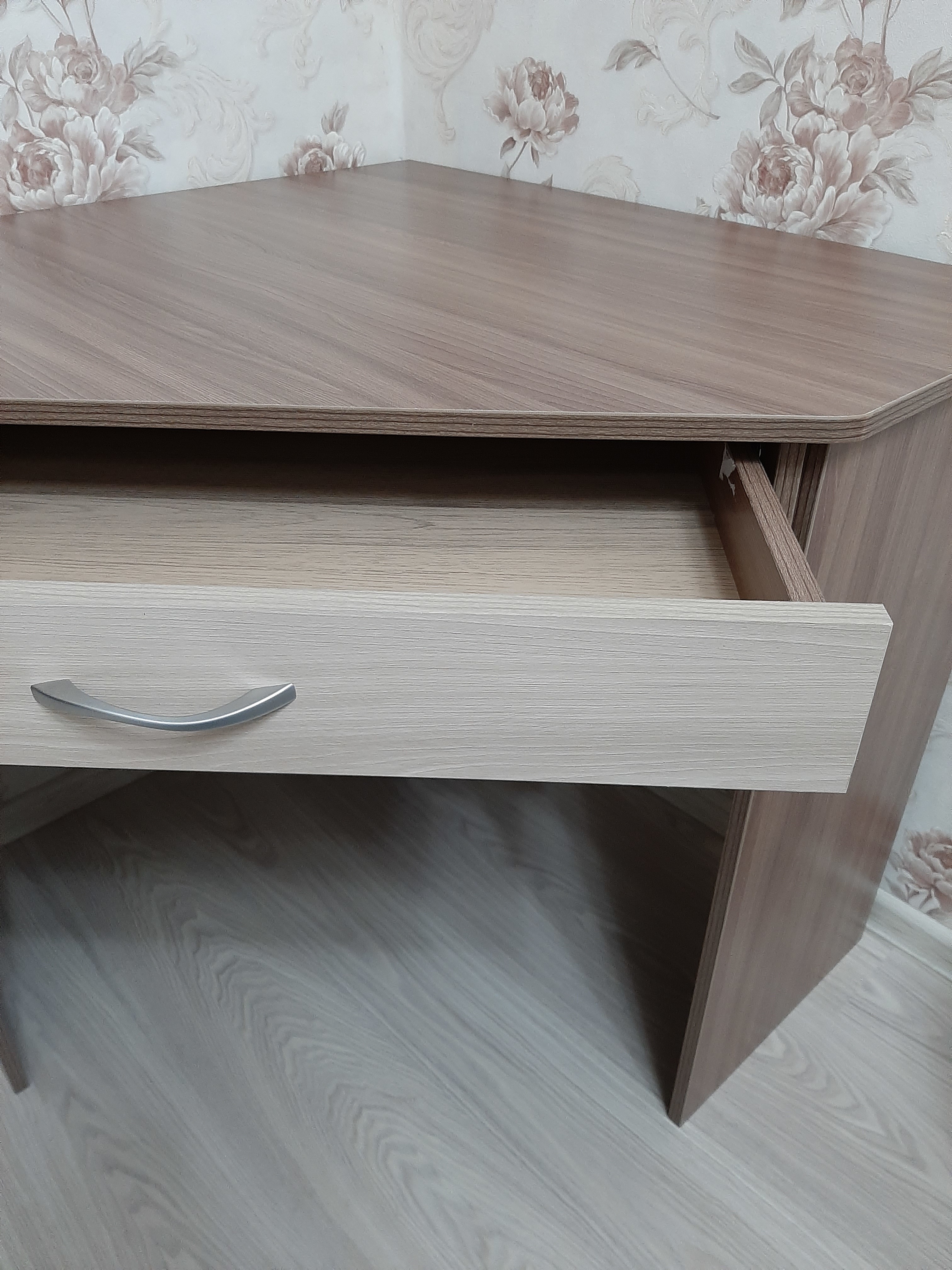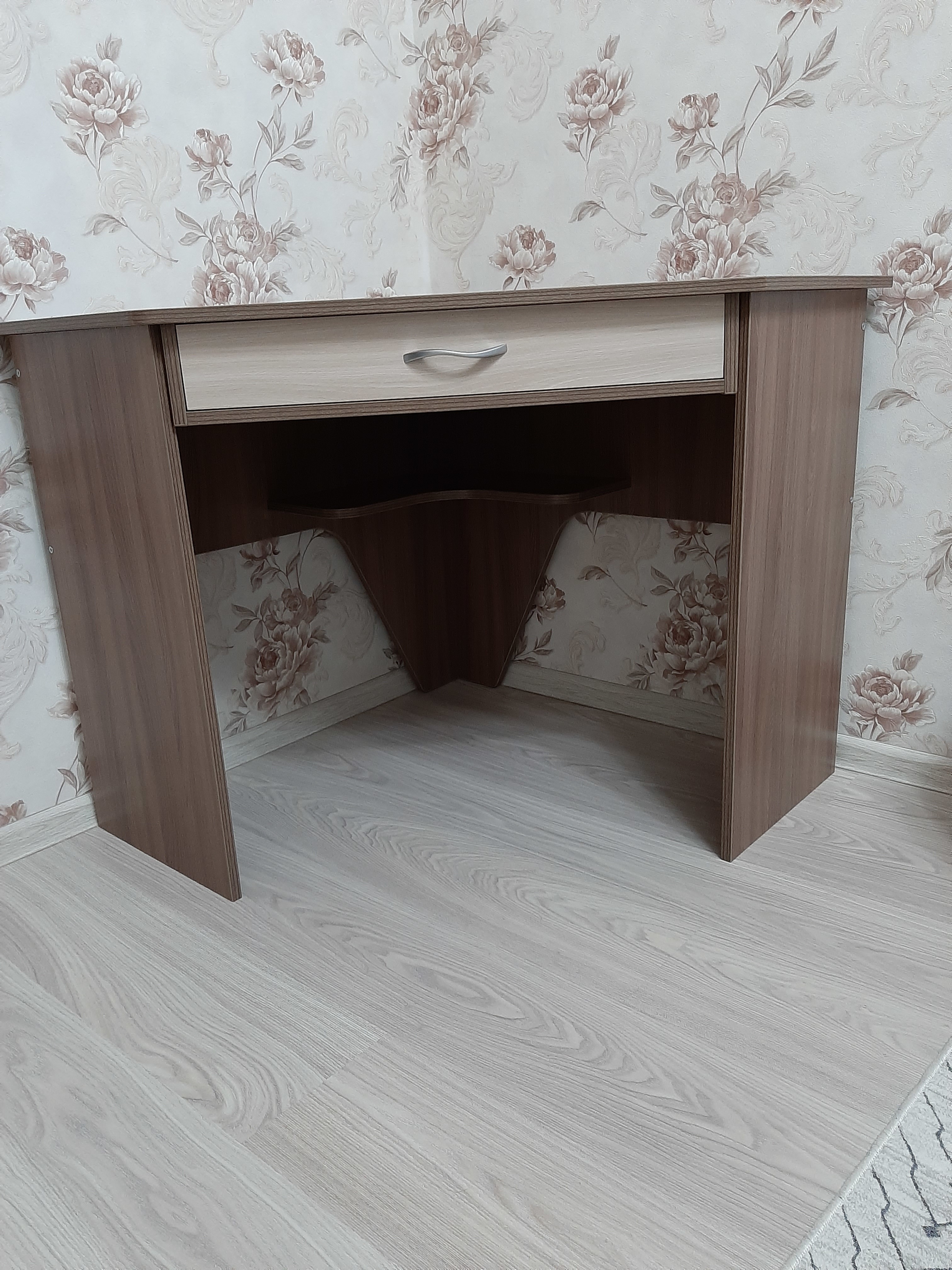 Очень долго искала компактный стол и нашла! Привезли оперативно, собрала сама за один вечер. В столе внизу есть полочка, на фото не видно, а полочки лишними не бывают)
