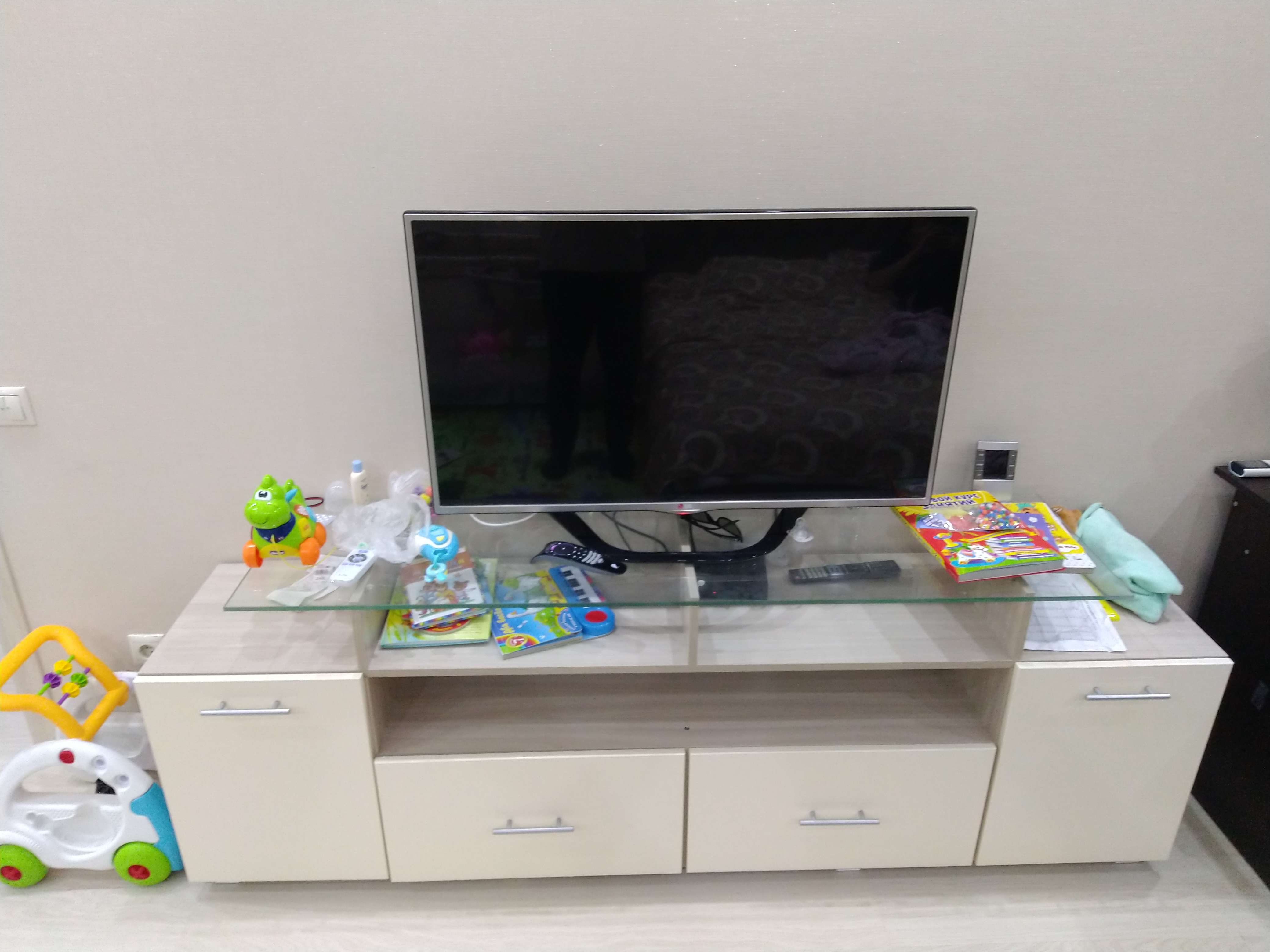 Отличная тумба! Заказали и не пожалели. На ней наш телевизор 42 дюйма кажется больше. Заказ 207598.